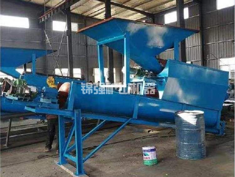 工作流程:人工砂或天然砂由帶式輸送機給料至篩分裝置,篩上的物料作為成品由帶式輸送機輸送至堆場,篩下的物料通過流槽進入沖砂裝置,在沖砂裝置中充分浸泡、攪拌和清洗。清洗后的物料輸送到前端脫水設備進行脫水回收,產生合格的成品砂。
